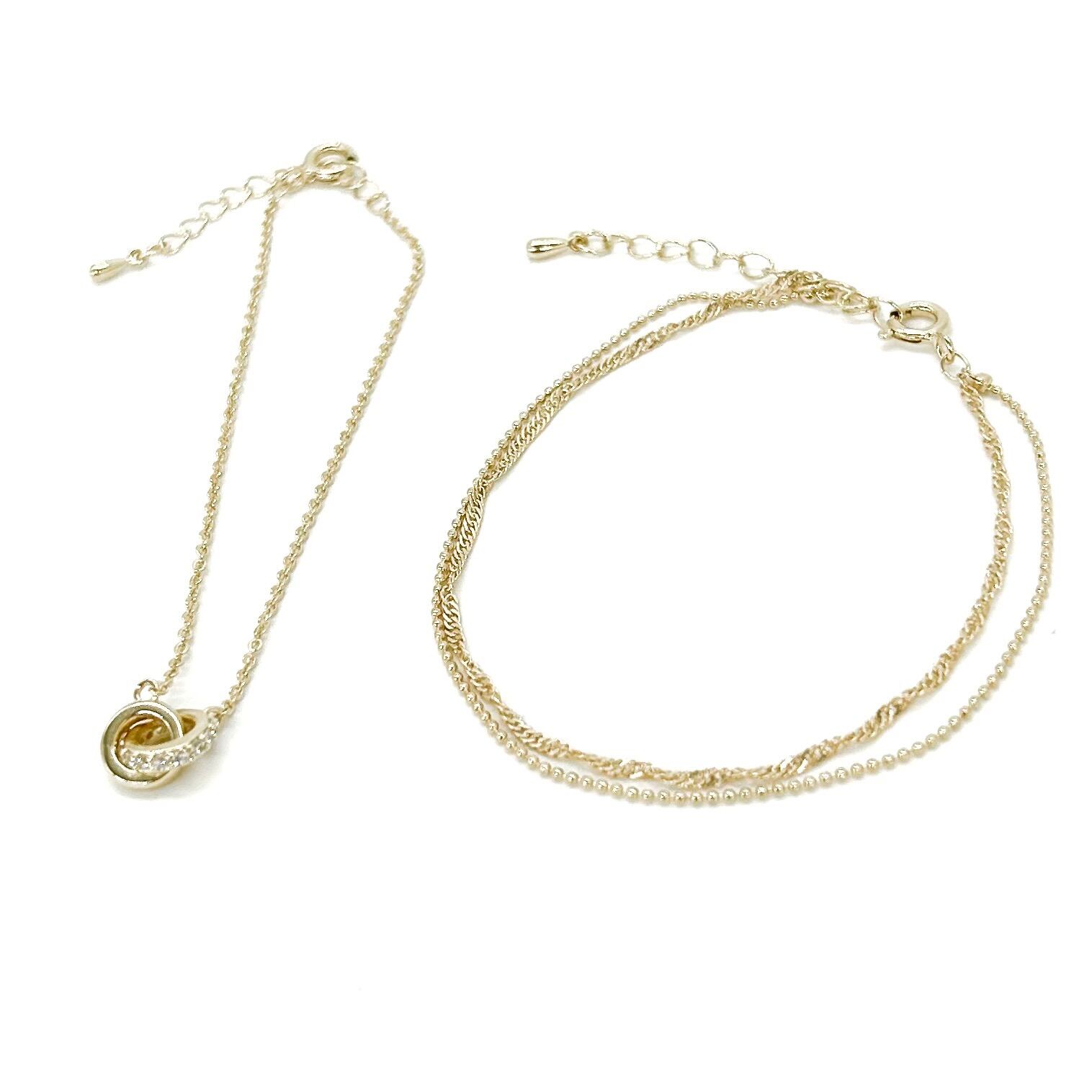 これ一つで、腕回りが可愛く変身。 1連と2連の2本セット。 使いやすい、ブレスレットセットです。 *商品説明* カラーバリエーション / シルバー、ゴールド、ピンクゴールド ・全長/約15cm ・モチーフ部/約1.0cm ★アジャスター付き ★キュービックジルコニア