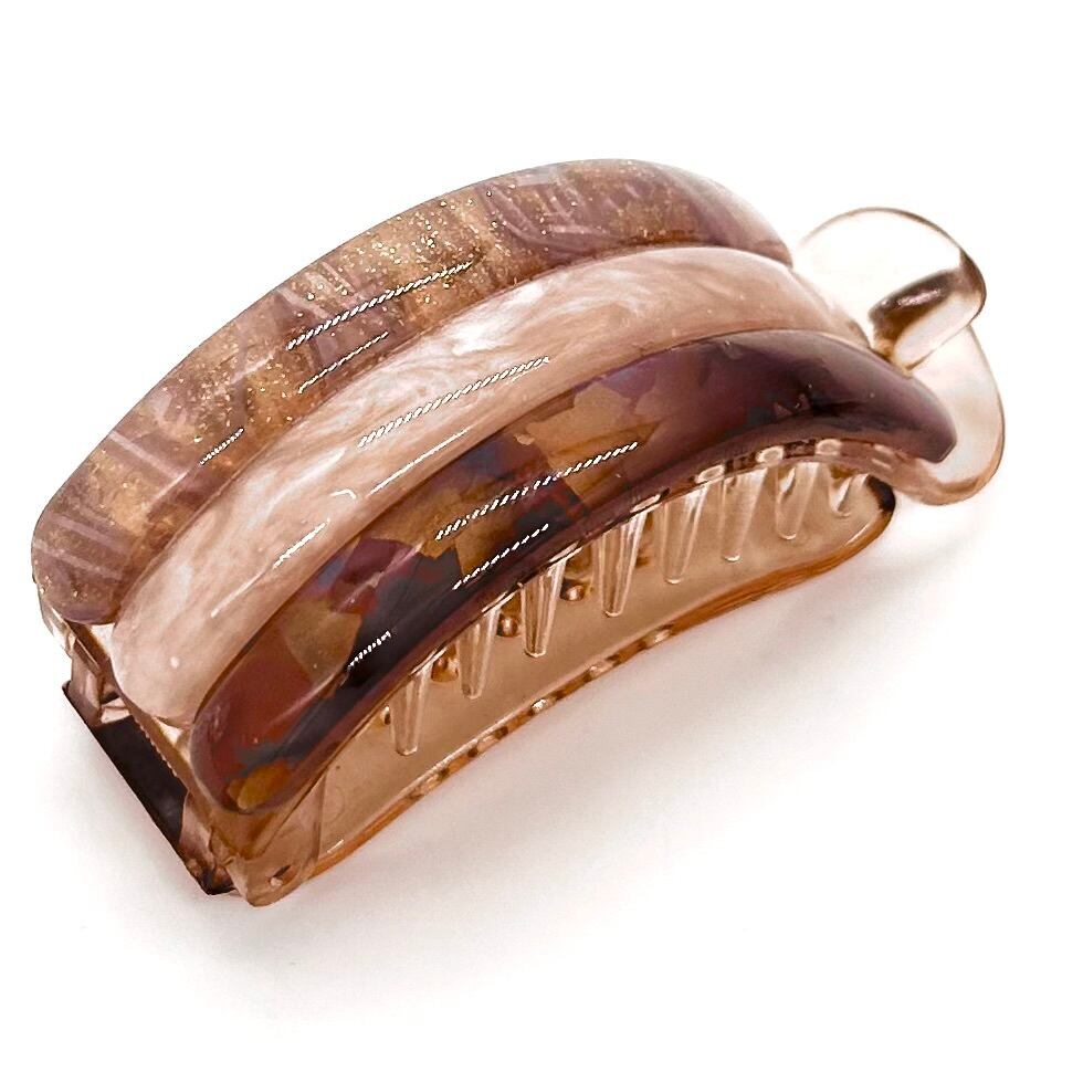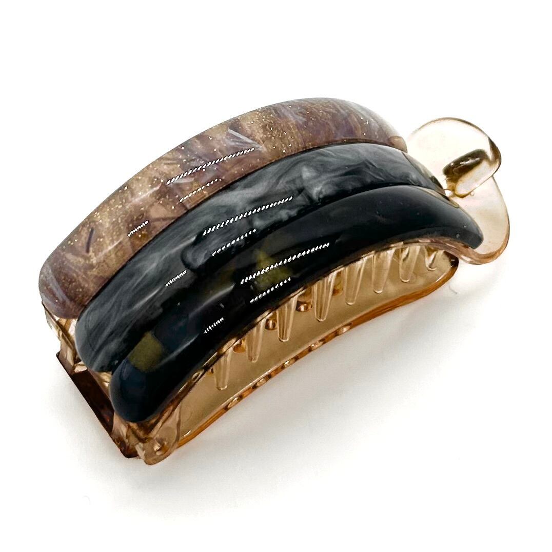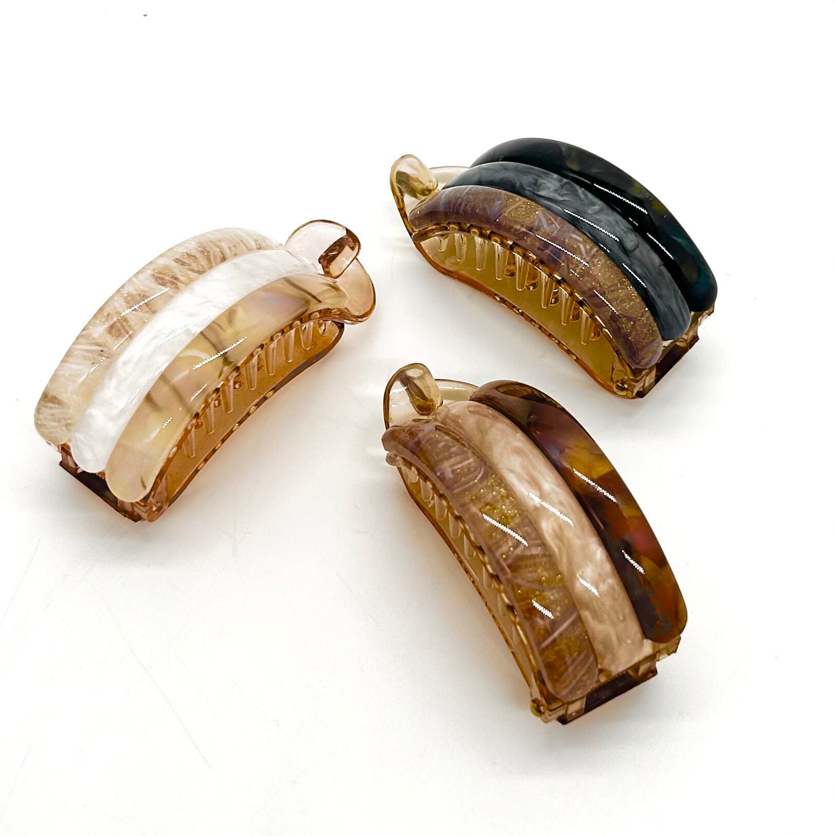 留める、その瞬間を美しく。 髪を優しく包み込み、軽やかにまといながらも、安定したホールド感を実現。 髪留めの新常識【Clappin】登場。 *商品説明* カラー / ホワイト、ブラウン、ブラック サイズ / 全長:約7.0cm ★パーツの特性上、写真の模様パターンとの違いがございます。