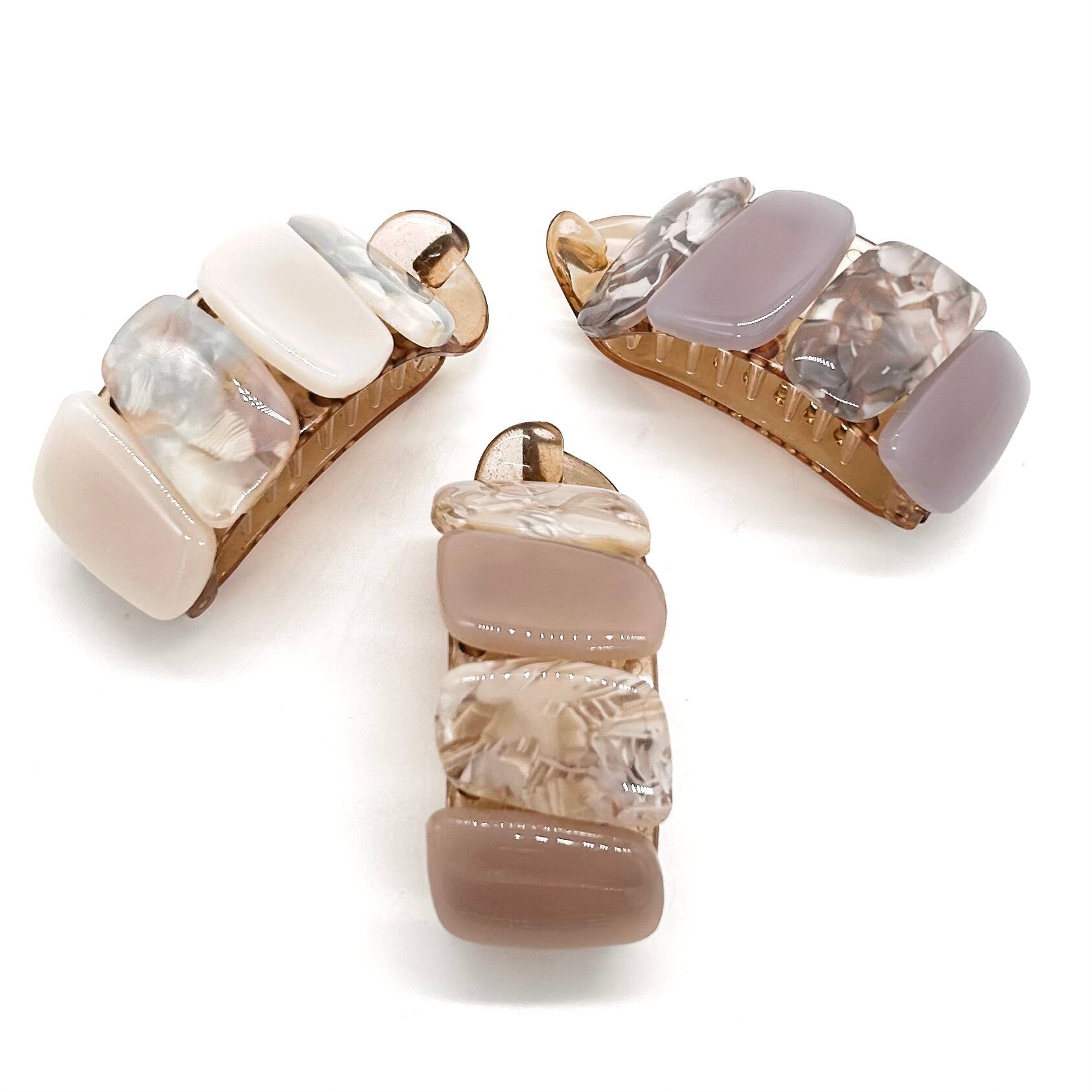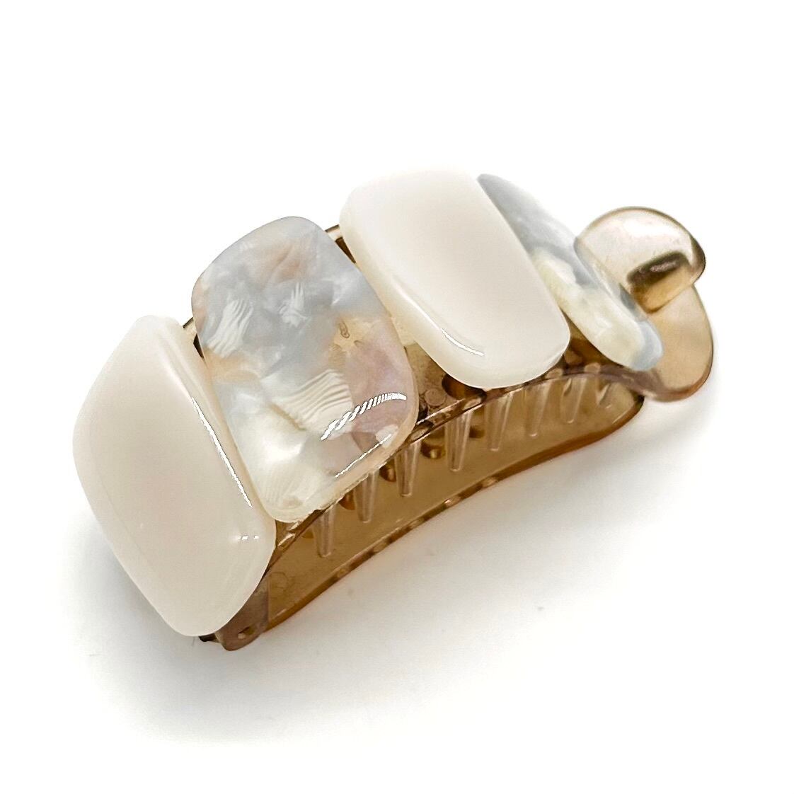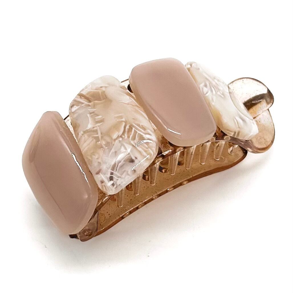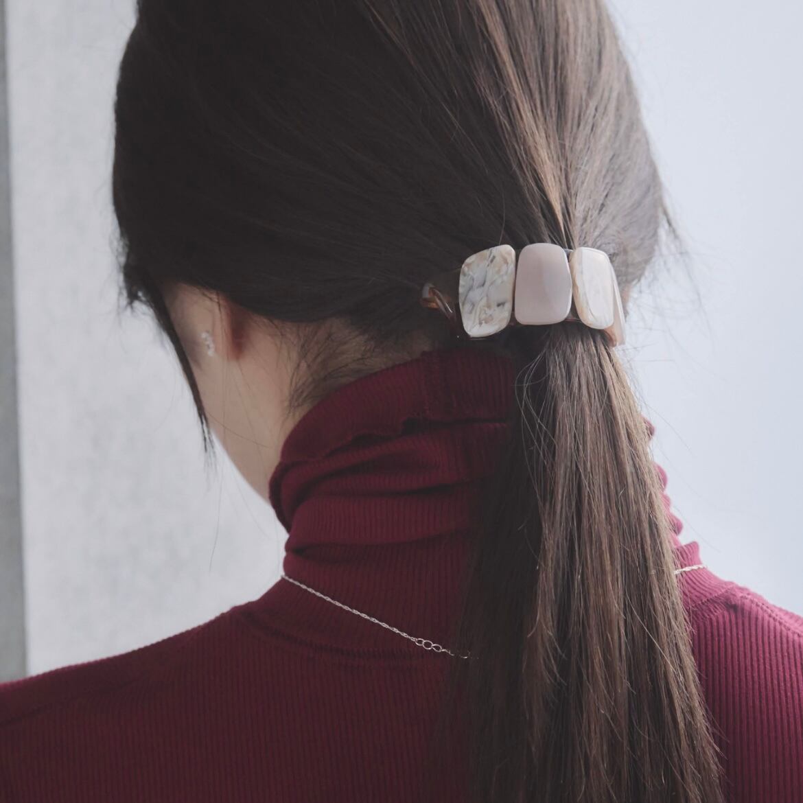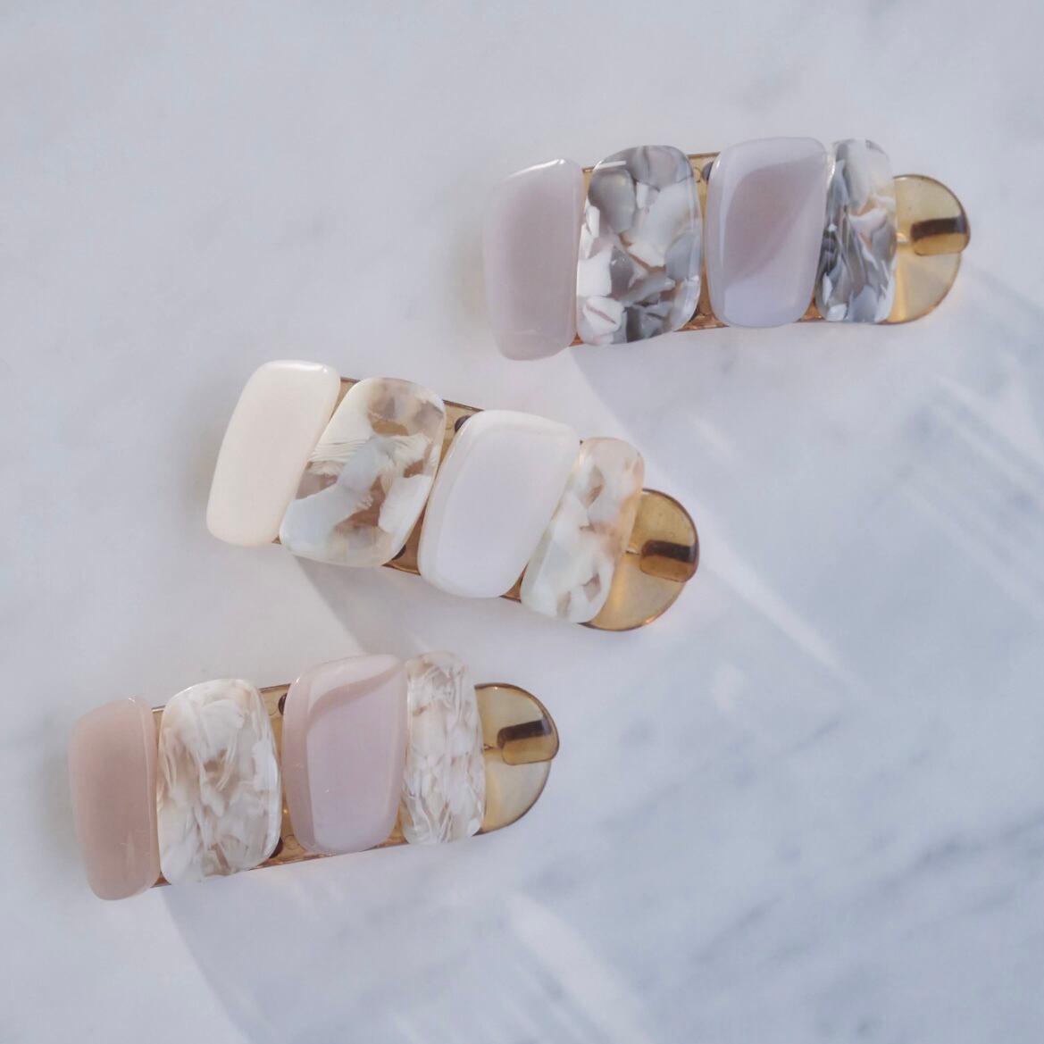 留める、その瞬間を美しく。 髪を優しく包み込み、軽やかにまといながらも、安定したホールド感を実現。 髪留めの新常識【Clappin】登場。 *商品説明* カラー / ホワイト、ピンク、グレー サイズ / 全長:約7.2cm ★パーツの特性上、写真の模様パターンとの違いがございます。