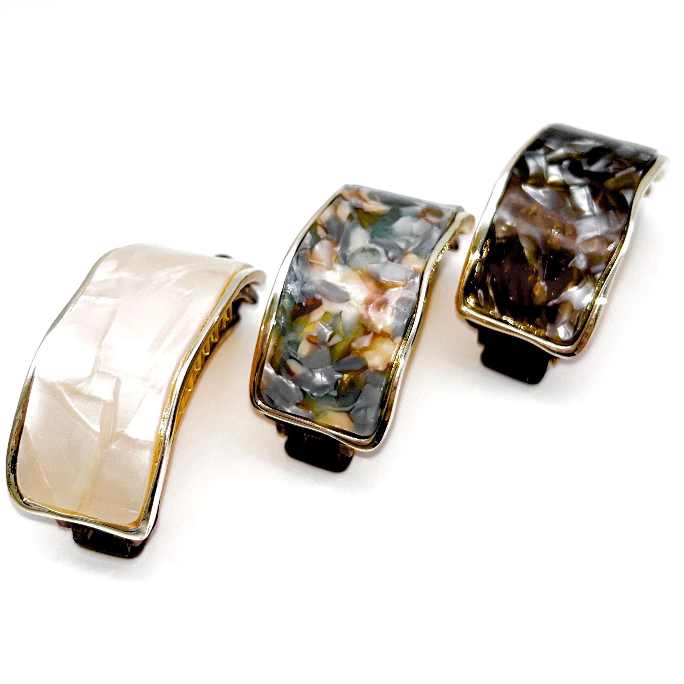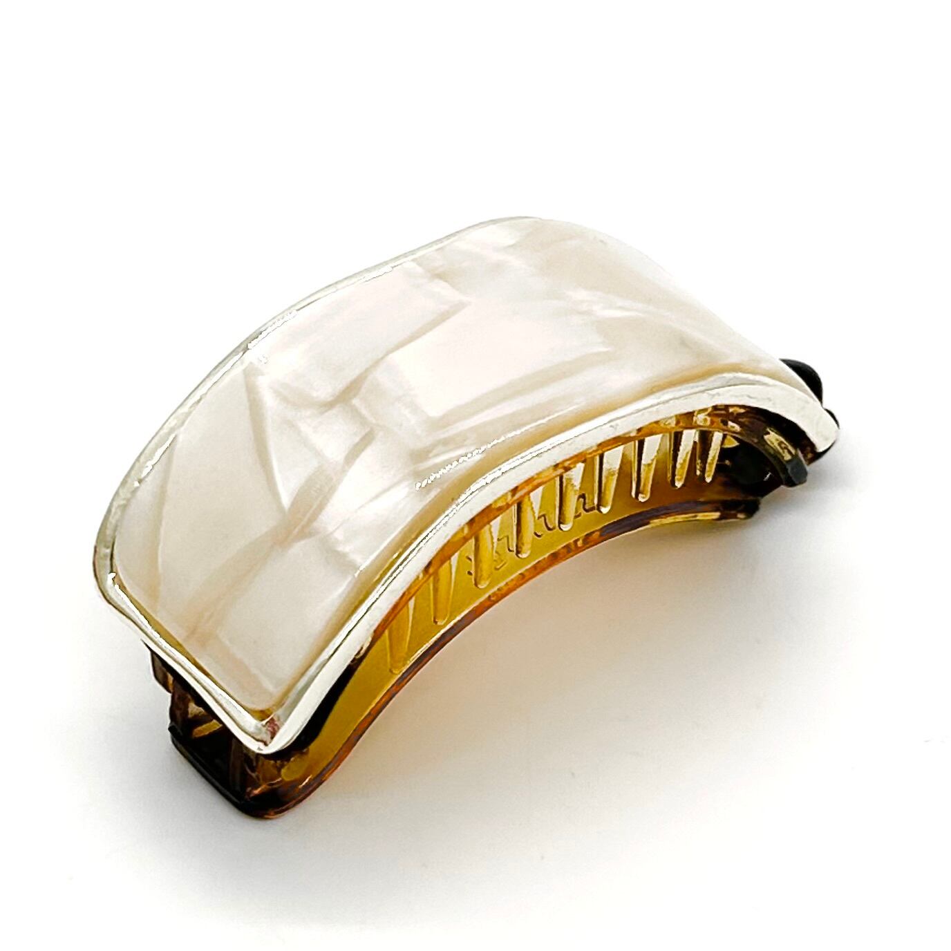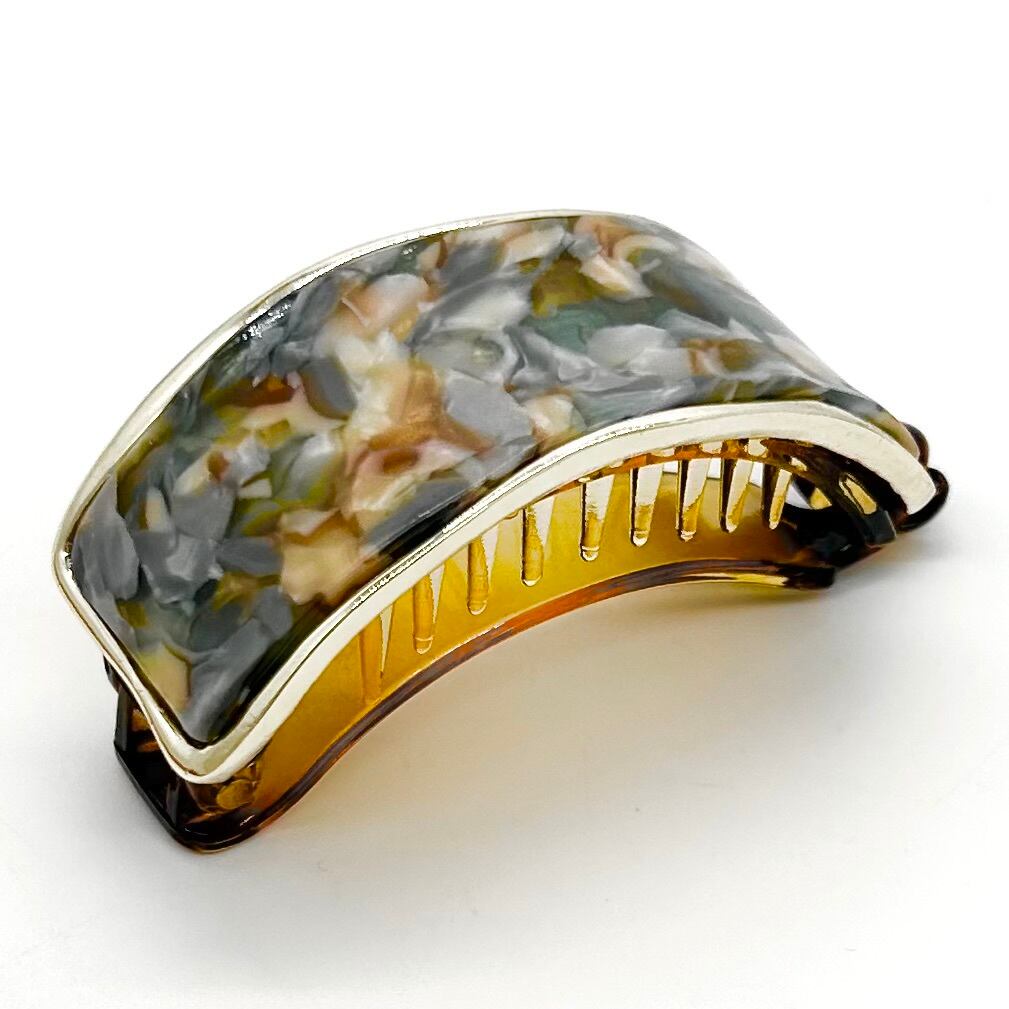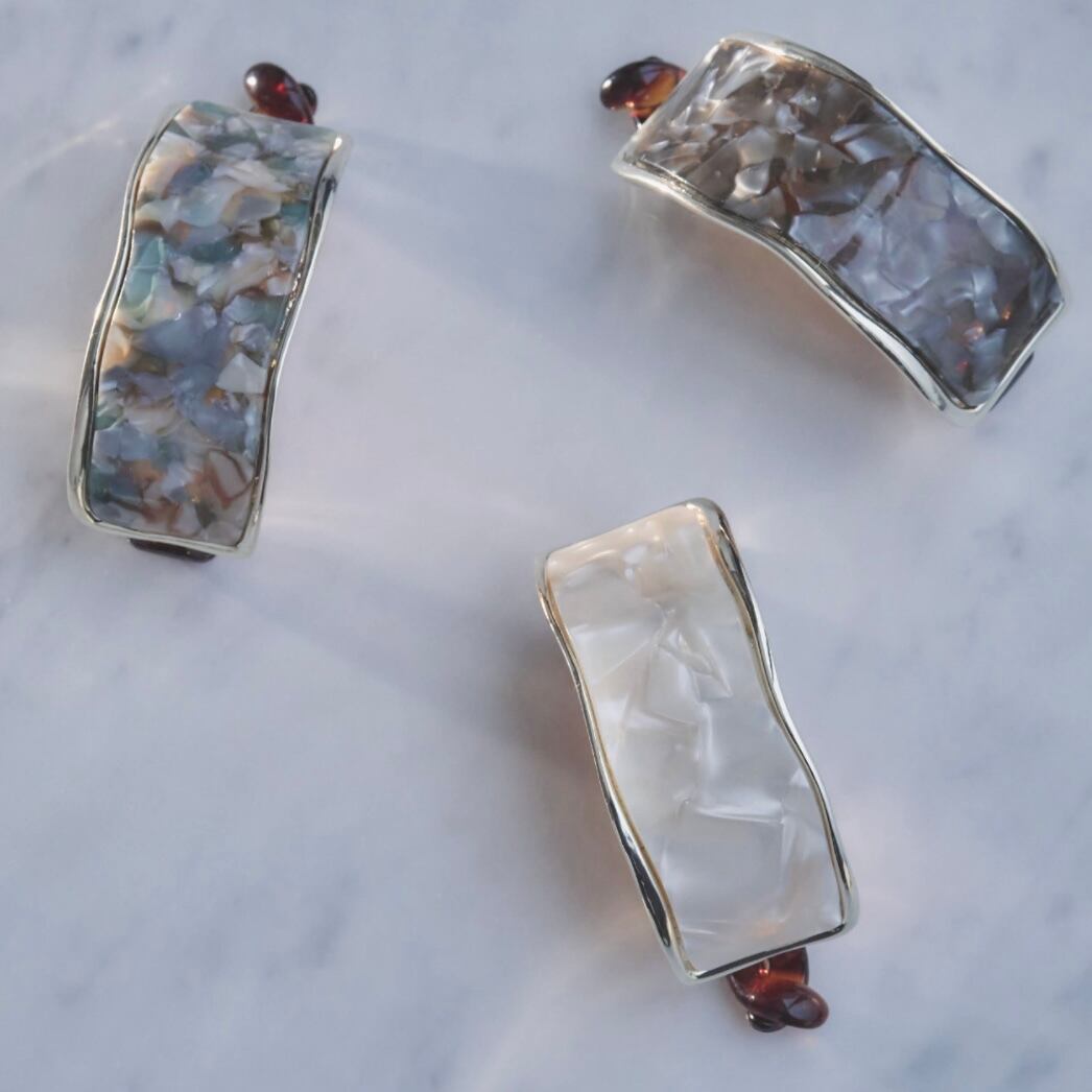留める、その瞬間を美しく。 髪を優しく包み込み、軽やかにまといながらも、安定したホールド感を実現。 髪留めの新常識【Clappin】登場。 *商品説明* カラー / ホワイト、ブルー、グレー サイズ / 全長:約8.2cm ★パーツの特性上、写真の模様パターンとの違いがございます。