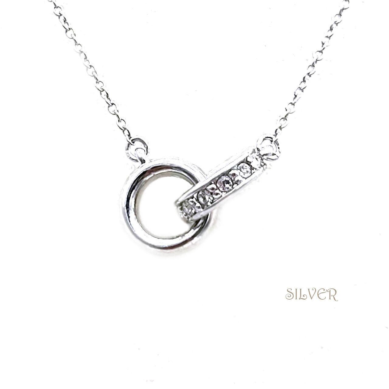 ふたつの縁が寄り添うネックレス♡ とてもかわいいです♪ *商品説明* カラー / シルバー、ゴールド、ピンクゴールド サイズ / 全長:約38㎝ ★ガラス石 ★ニッケルフリー ★Made in Japan