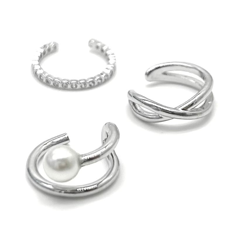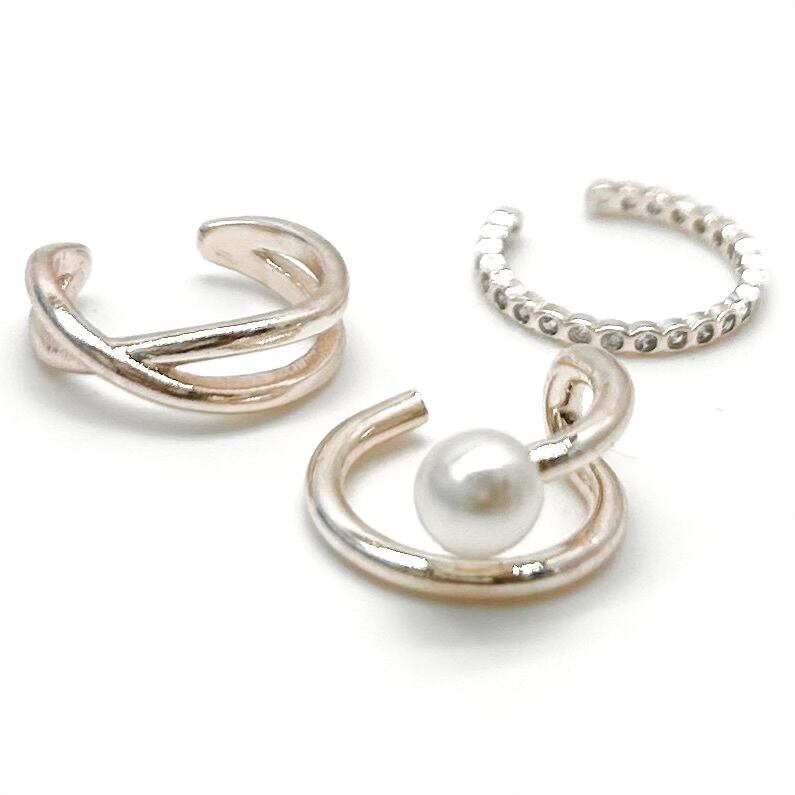 シンプルなイヤカフセット。 *商品説明* カラー / シルバー ゴールド ピンクゴールド サイズ / 全長:左約1.3cm、中約1.3cm、右約1.3cm ★ニッケルフリー ★合成パール ★キュービックジルコニア